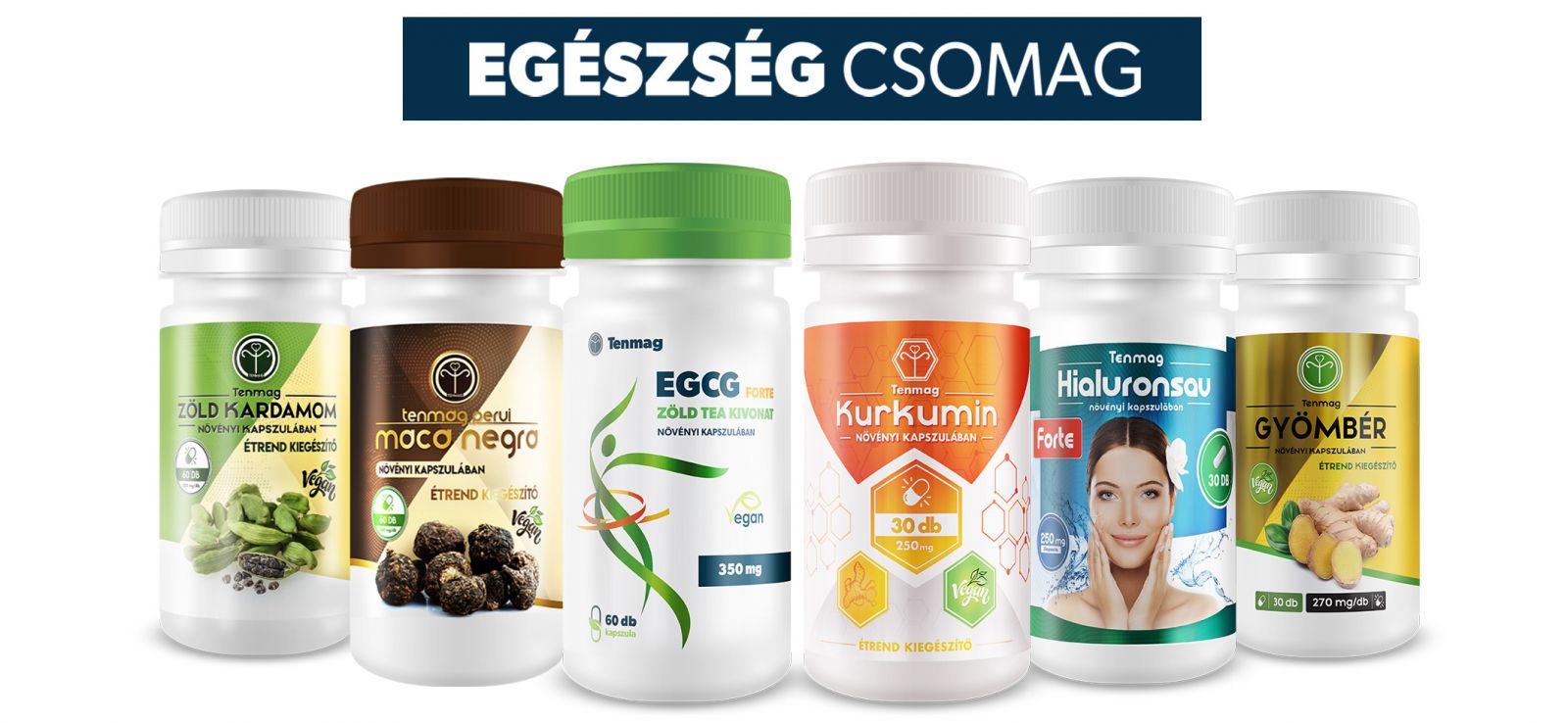 A Tenmag Egészség Csomag egy komplex, 270 kapszulából álló, 6 népszerű Tenmag terméket tartalmazó válogatás, amely az általános egészséget támogatja. A csomag olyan termékeket tartalmaz, amelyek jó hatással vannak a gyulladásokra, az ízületekre, az érrendszerre, a szívre, az emésztésre, a bőr szépségére, az ideális testsúly beállítására, és a hangulatra