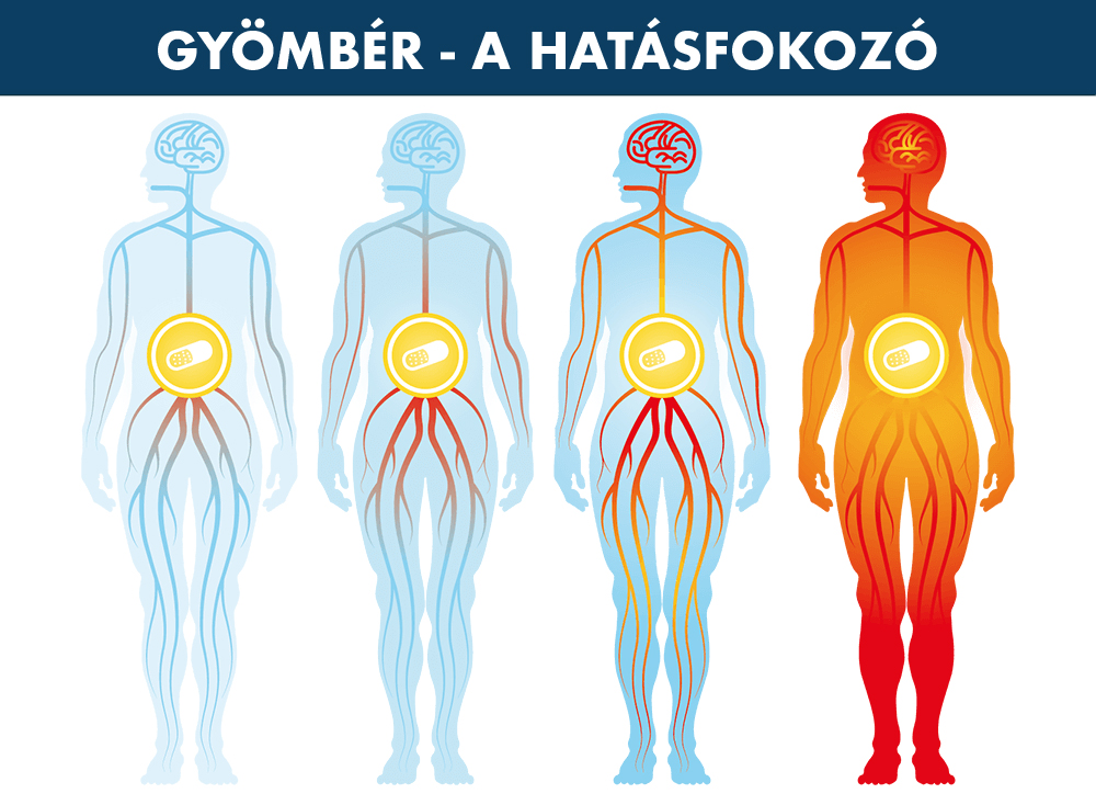 A gyömbér mindennek fokozza a felszívódását, amit szájon át bejuttatunk a szervezetünkbe, vérbőséget okoz minden szervben, így az emésztőrendszerben is. A sokak által kedvelt kurkumin, akár 100X-osan is képes felszívódni a véráramba a gyömbér jelenlétében.